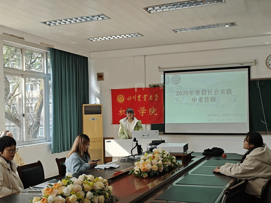 12月16日中午,机电学院在六教201会议室举行2026年寒假社会实践申重答辩会,学院党委办公室主任张丽娜,团委老师唐诗怡作为评委出席本次会议。图为答辩召开现场本次答辩会共有“青衿聚力・暖冬践益”、“悠悠寻迹”、“知行机电・青绘乡图”、“禾盛安邦,椒械兴农”四支实践团参与。每支团队的答辩人从团队的特色、实践计划以及预期成效等方面向评委进行详细介绍。有的团队以制度为承载,通过多方调研提出优化方案;有的团队则扎根于乡村振兴的热土,...