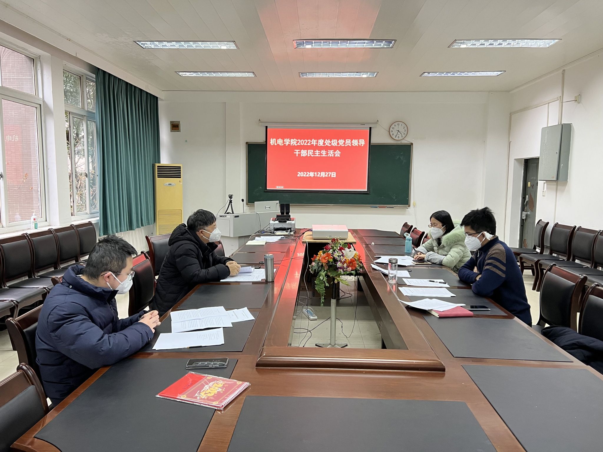 12月27日,机电学院在六教201会议室召开2022年度党员领导干部民主生活会,院班子成员出席会议。会议由学院党委书记唐城主持。