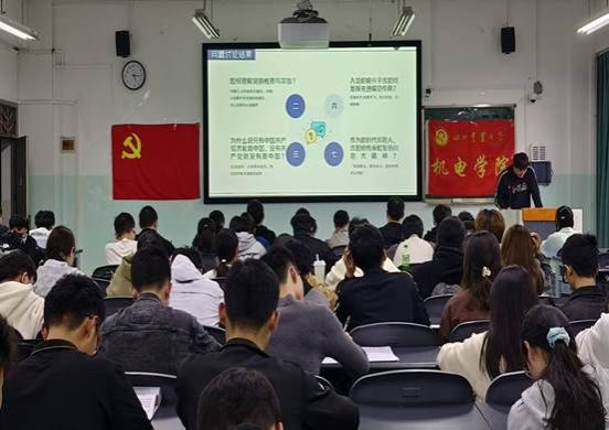 学院党委书记唐城以《中国共产党的指导思想》为题为入党积极分子授课,他系统讲述了中国共产党指导思想的确立及其发展历程、党的指导思想的深刻内涵以及在实践中坚持党的指导思想行动重要意义,结合党的二十大重点讲解习近平新时代中国特色社会主义思想。他指出,党的指导思想是党的行动指南,是指导党全部活动的理论体系,是党的思想、政治、组织、作风建设的理论基础,学习党的指导思想的目的在于充分认识理解党的指导思想形成的历史过程,掌握党的指导思想的科学内涵,从而认同党的指导思想的精髓,做到真学、真懂、真信、真用。最后,他鼓励培训班全体入党积极分子要做坚定的马克思主义者,做到学深悟透,融会贯通,真信笃行,履职尽责担使命,为国家事业贡献机电学子的力量。
