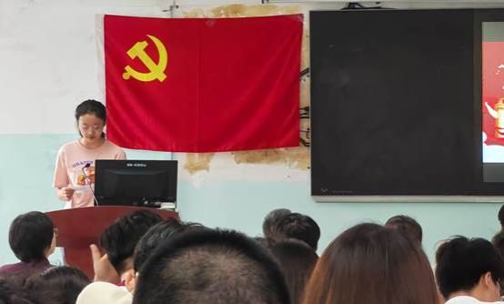 毕业生党员代表唐英文和预备党员代表廖子禾分别发言。唐英文与毕业生党员一起回顾了四年来从“一名青涩学子到一名共产党员的蜕变与成长”,结合个人求学的经历和入党以来的成长历程,与新发展党员交流专业学习、学生干部工作中的收获和感悟,鼓励学弟学妹努力学习专业知识,不断锤炼意志,用青春的活力和激情,在党的领导下,为实现中国梦贡献力量。“我将严格要求自己,接受党组织的考察和培养,争取早日成为一名合格的共产党员。”新发展党员廖子禾表达了以优秀的毕业生党员为榜样,不断奋进前行,不忘初心,牢记使命,积极作为,勇于担当的决心。