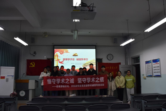 为进一步加学风建设和学术诚信教育,引导师生强化诚信意识、规范学术行为、维护学术道德,机电学院农电、农机研究生党支部于12月3日联合举办“恪守科研诚信,坚守学术信仰”主题党日活动,旨在营造清新正直的学术环境,促进学院科研和学术研究的健康发展。
