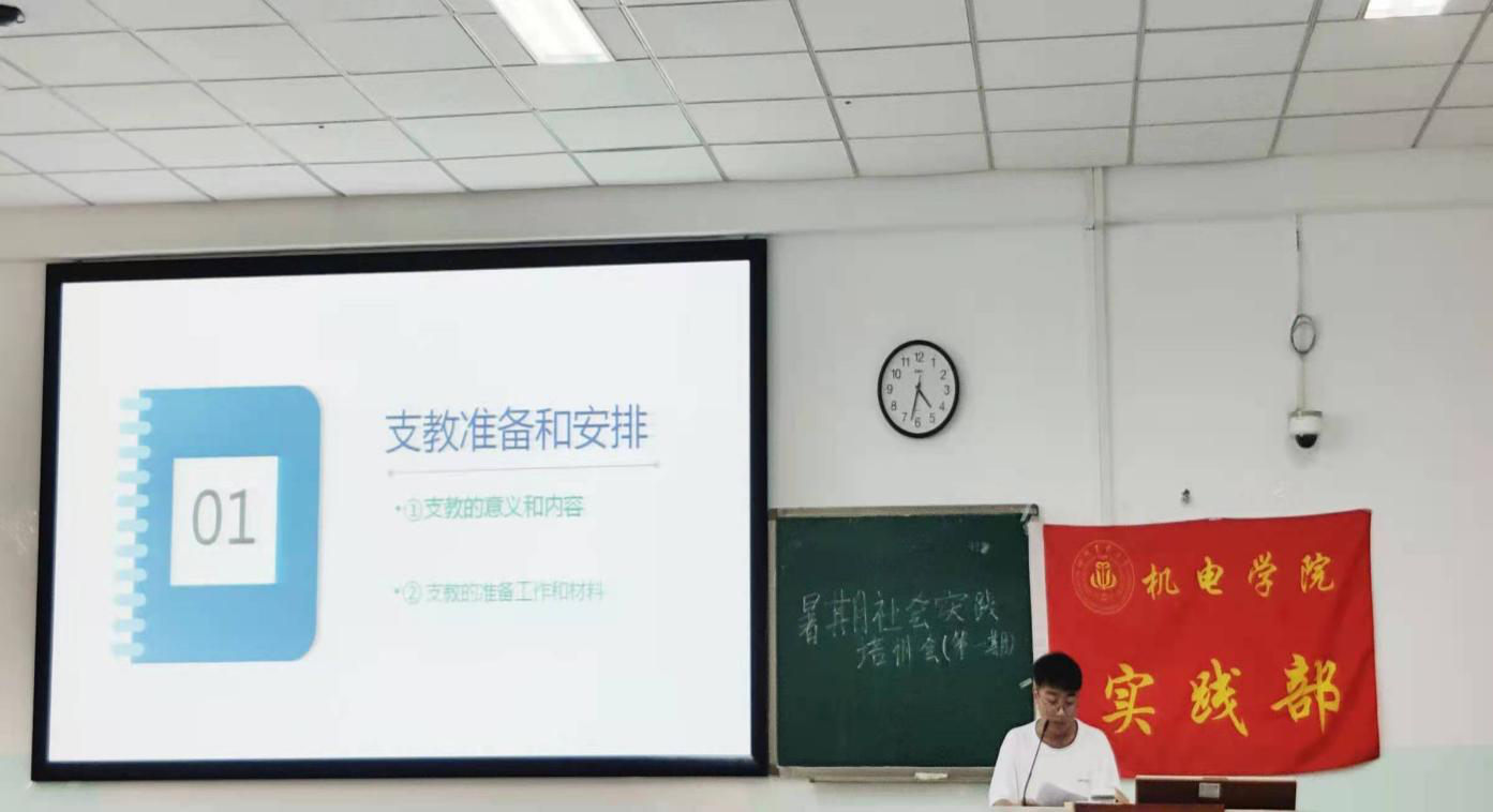 为保证我院2021年暑期社会实践顺利开展,增强同学们对社会实践的重视,提高大学生服务社会、奉献社会的意识,机电学院实践部特此举办暑期社会实践培训的专讲。培训会第一期,主题为“支教与服务建设”,于06月15日下午四点二十在十教A304成功举办。