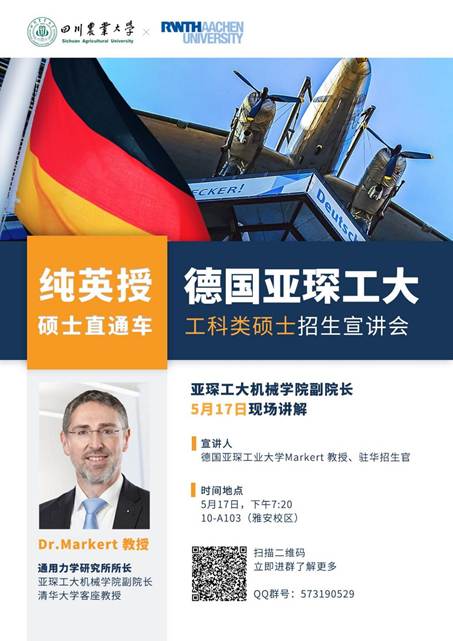 为拓宽本科毕业生出国升学渠道,提升就业质量,2021年5月17日晚七点,由机电学院承办的德国亚琛工业大学(德语:Rheinisch-Westfälische Technische Hochschule Aachen,英语:RWTH Aachen University)工科类硕士招生宣讲会在10教A103召开。本次宣讲会采用线上线下相结合的方式,邀请到了德国亚琛工业大学机械学院副院长Markert教授等德方专家实时连线进行讲解,项目德方中国联系人、机电学院党委副书记黄锎靓、学院国际合作秘书王萌和学院党委办公室辅导员出席此次会议。
