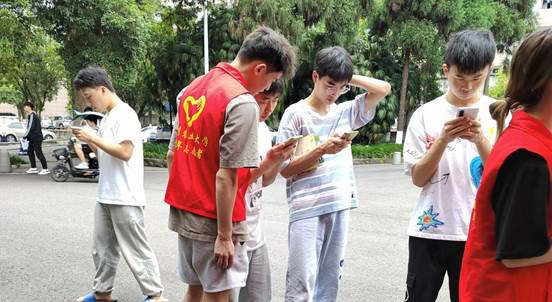 图为志愿者指导参与者打开青骄第二课堂参与答题。