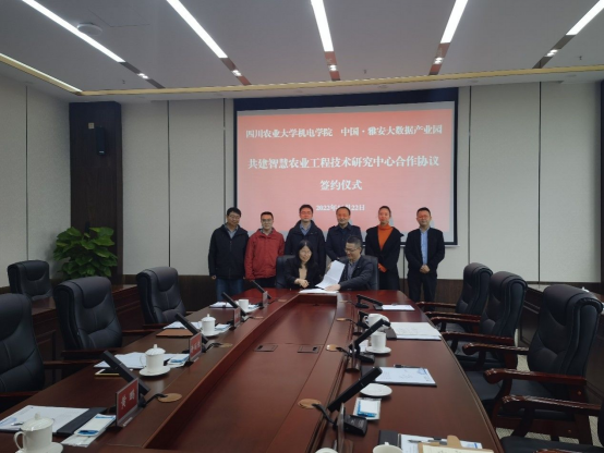 11月22日,机电学院与雅安大数据产业园举行共建智慧农业工程研究中心合作协议签约仪式。机电学院院长许丽佳教授,党委副书记黄锎靓副教授,电子科学与技术系副主任、专业负责人黄鹏副教授,电子科学与技术系副主任赵永鹏副教授,雅安经开区党工委委员、管委会副主任喻思皓,雅安数字经济运营有限公司董事长周小波,雅安数字经济运营有限公司副总经理张博等出席会议。