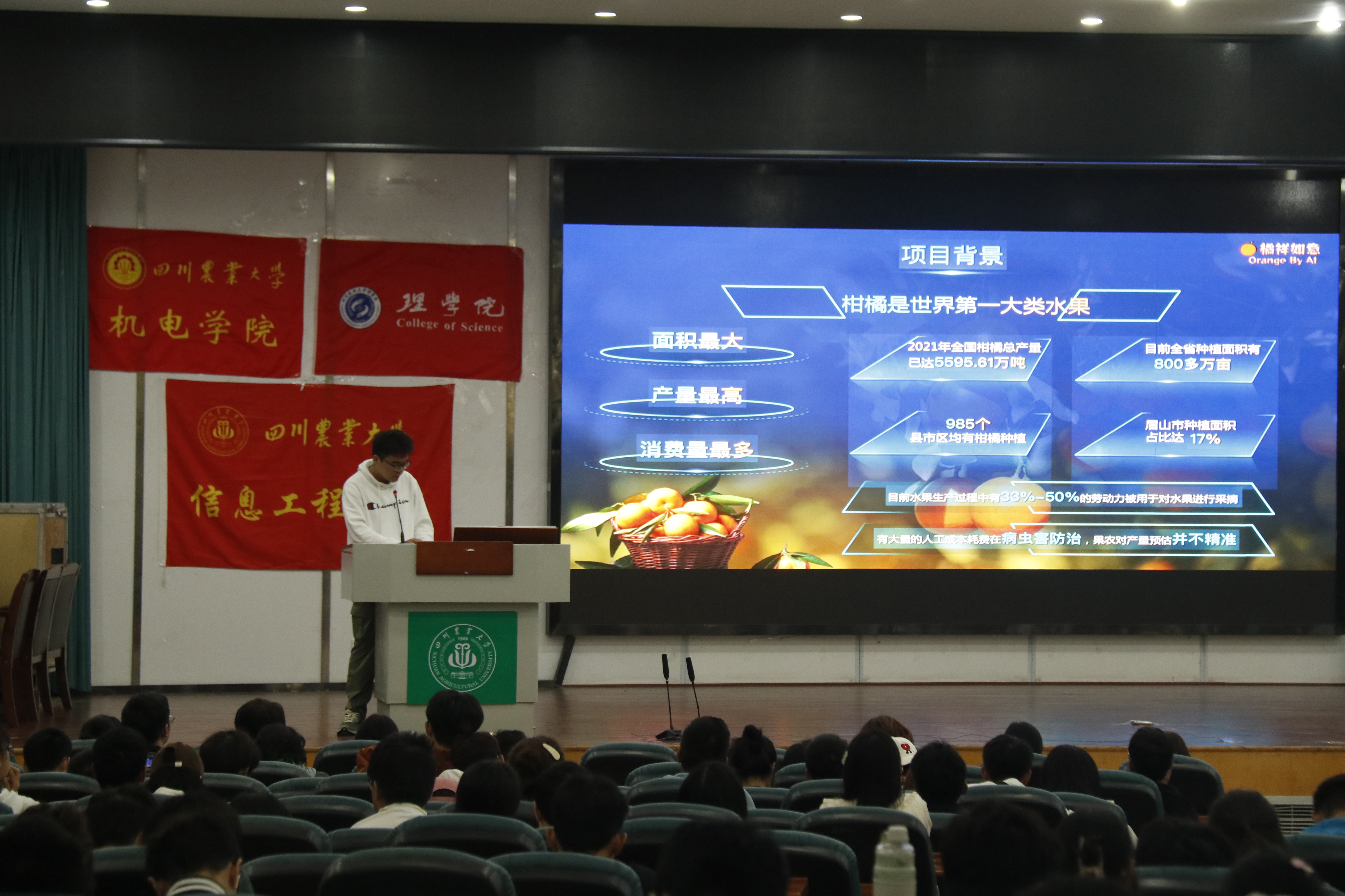 本次宣讲会由历届创新创业优秀团队带来经验分享,宣讲成员们精心准备,以自己亲身经历为例激发了2023级新生们对于创新创业的热情。来自机电学院的第九届“互联网+”省金项目负责人吴佳怡、理学院的研究生黄琨以及来自信息工程学院“ 挑战杯”省级特等奖团队“育鸭有道”和“ 互联网+”省级银奖团队“ 橘祥如意”,均带来了精彩纷呈的分享。