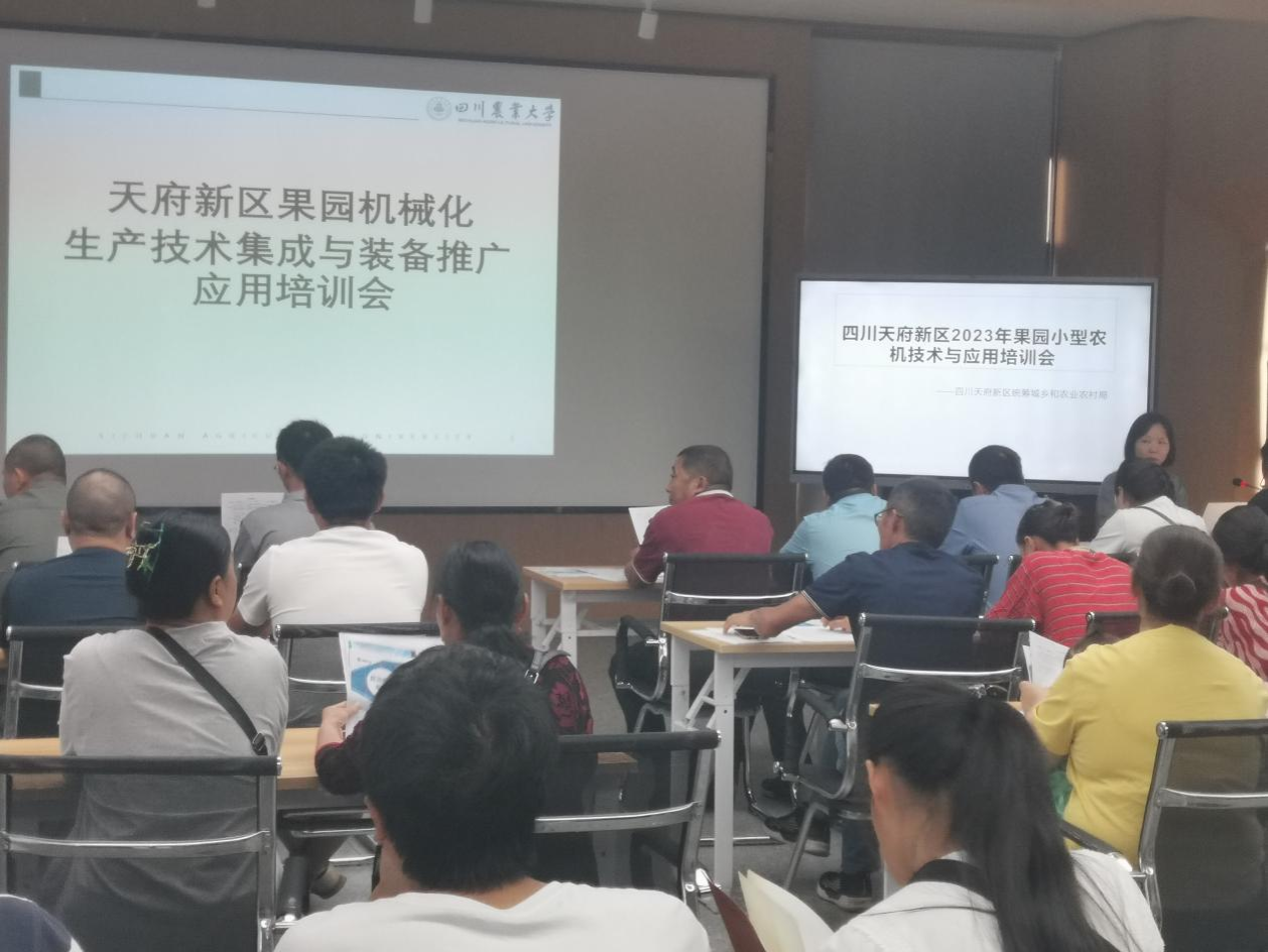 为提高天府新区果园作业机械化水平,推广应用果园生产智能农机,加快农业生产现代化进程,9月21日天府新区统筹城乡和农业农村局联合tyc41183太阳成集团在天府新区见山农场召开全区果园机械化生产技术集成与装备推广应用培训会。我校机电学院陈霖教授、雷小龙博士携研究生对全区相关农业经营主体80余人开展了果园机械化生产技术培训及果园机械的现场作业演示。