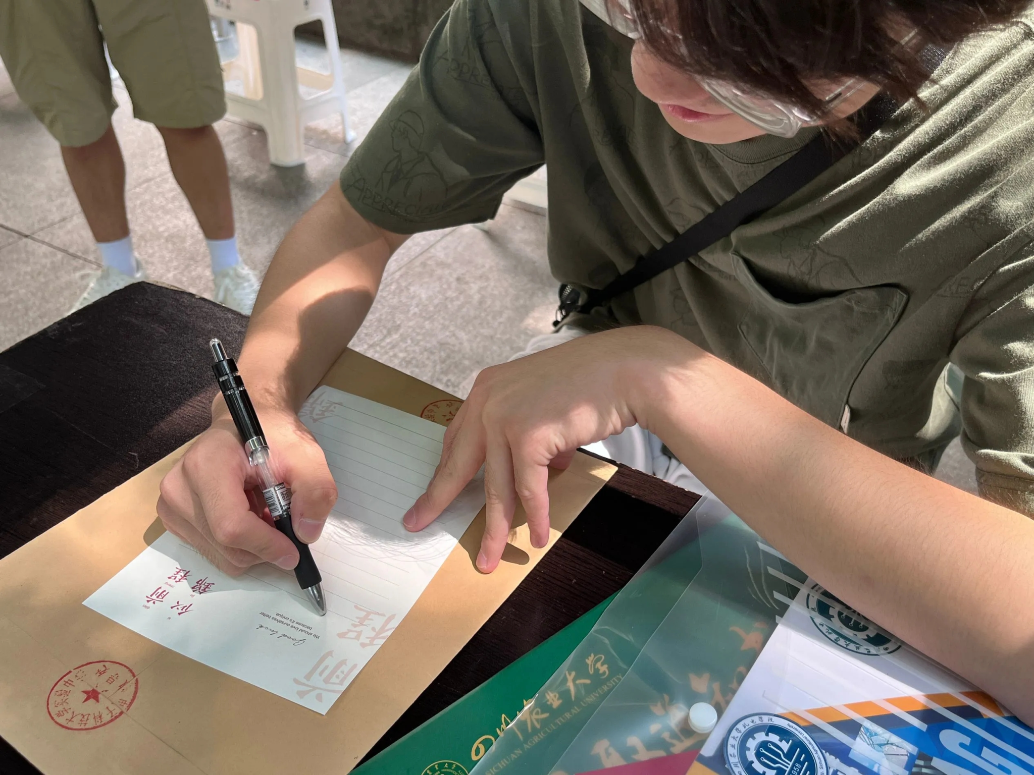 迎新日吹响了机电新人集结号角。学院以“机小电新生集结号”为特色主题,以机电学院院徽为主要元素,定制了迎新拼图。每一位新同学在完成报道程序后,由现场志愿者引导到拼图点,选择一片拼图签上自己的名字,这一块块象征着机电新人的小碎块将最终汇聚成机电学院的大版图。学院为每一位前来的报道的小萌新都准备了一份礼物,其中不仅有高年级同学的手写信,还有印着“川农大精神”的精美书签。与此同时,学院还为同学们准备了“时光信箱”。大家不仅可以在现场写下对自己未来四年大学生活的期盼与规划,还可以同步线上,通过时光信箱的小程序记录下自己的所感所想。立足当下,启航未来,学院对全体机电新人寄予了深切的期盼。