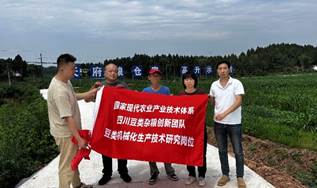通过此次对资阳多地进行调研及开展大豆抗旱保收技术指导,团队了解到了资阳各地的实际情况,提出了高温抗旱应急处理技术指导建议:高温时期可采用叶面肥喷施,既有利于降温增湿,又能补充大豆、玉米生长发育必需的水分及营养,及时采取物理防控和化学防控病虫害;由于高温干旱导致大多数大豆未能发芽出土缺苗严重的,建议当地及时重播;由于高温干旱导致大豆播种期延迟,建议采用播种机进行抢墒播种以稳定大豆的生产质量和产量。