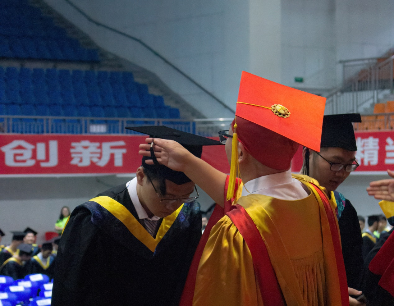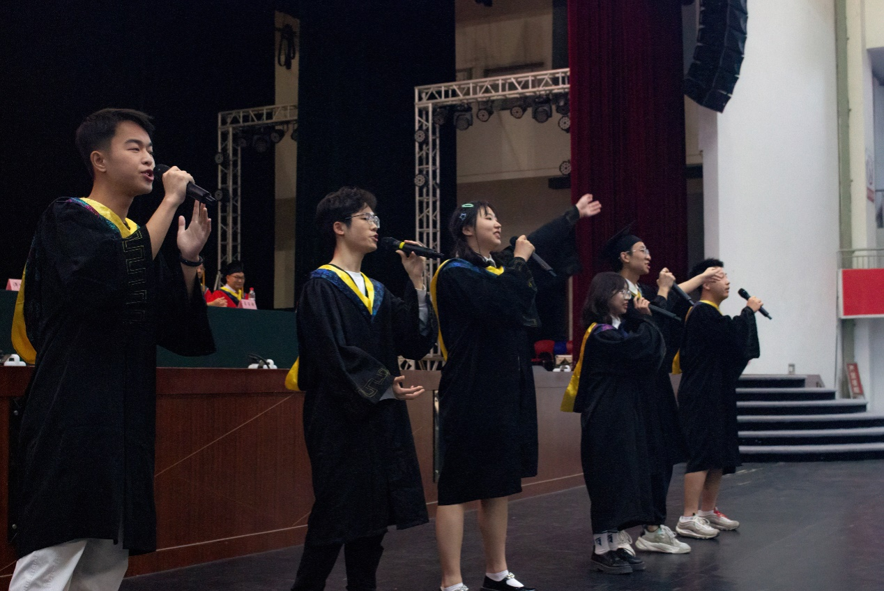授位仪式接近尾声,会场突然响起旋律《那些年》,毕业生代表惊喜献唱,将全场氛围带至高点,最后在《我和我的祖国》明快热烈的歌声中,机电学院2023本科生毕业典礼暨授位仪式圆满落下帷幕。“此去乘风,鹏程万里。”毕业是终点也是起点,祝愿机电学院的毕业生们前程似锦、未来可期。