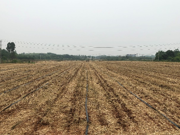 同时,我校机电学院韩丹丹博士联合农学院王小春教授、水利水电学院唐晓培博士等人针对大豆-玉米带状复合种植技术进行田间播种示范,并围绕间作播种机在田间播种时的注意事项以及种植技术和后期相关配套农机具的使用进行指导并提出了相关建议。基地采用2BFYDM-2/4大豆玉米密植分控施肥播种机,由配备导航系统的井关T1054型拖拉机进行驱动,采用2行玉米+4行大豆的大豆-玉米间作种植模式。今年将在该合作社累计播种示范300余亩,考虑到作物生长过程中因天气干旱影响后期出苗及产量等问题,项目实施团队对其中的100亩进行微喷灌设备安装,以保障后期的作物生长。