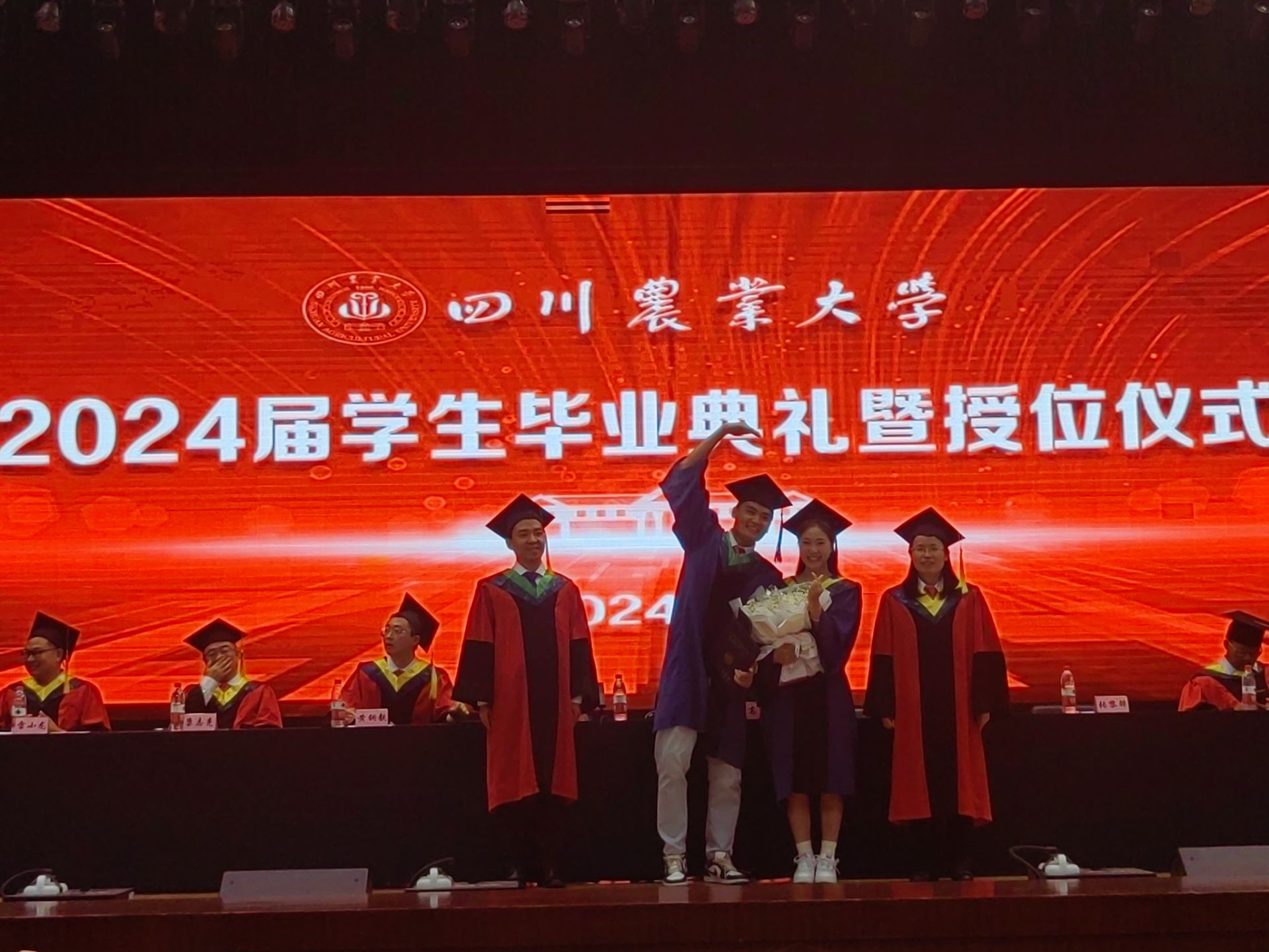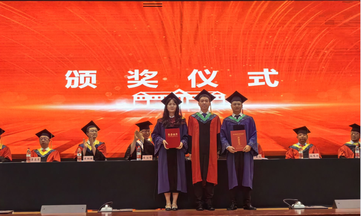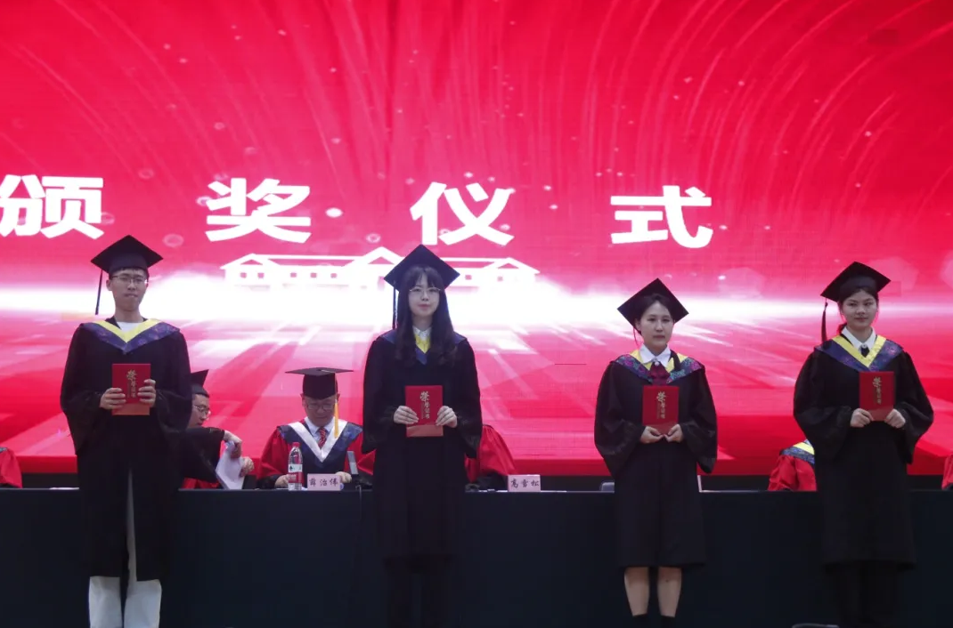 伴随着校歌《相聚在桂花飘香的时节》轻快的节奏,身穿学位服、头戴学位帽的毕业生们面带笑容、依次有序走上主席台,鞠躬致礼。校、院领导们为毕业生们拨穗正冠、颁发学位证书并合影留念,祝贺他们学有所成,嘱托风雨兼程的新征程上坚定理想、勇往直前,祝福前路繁花似锦,未来可期可待。