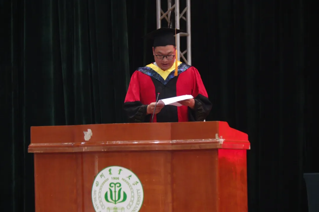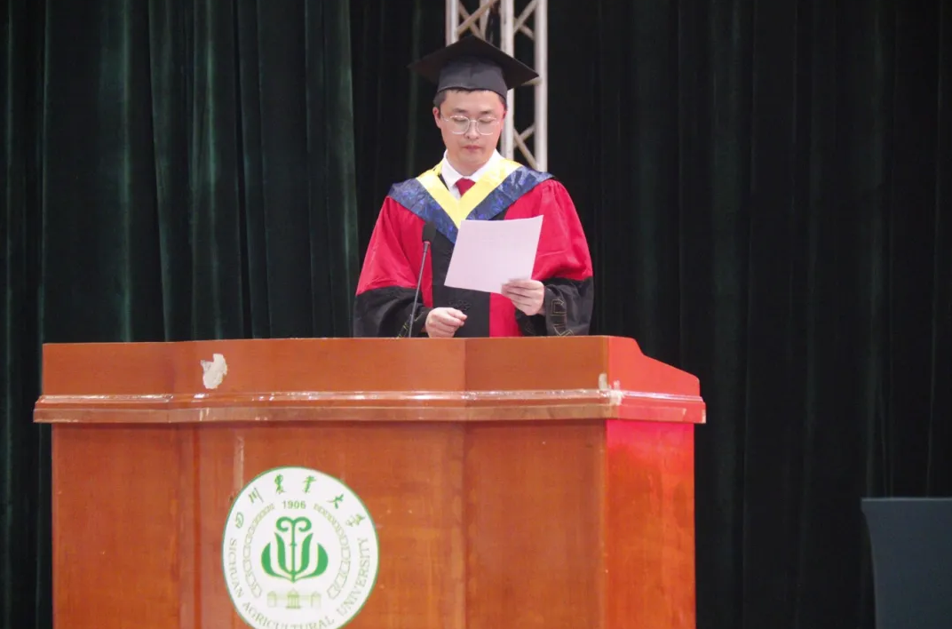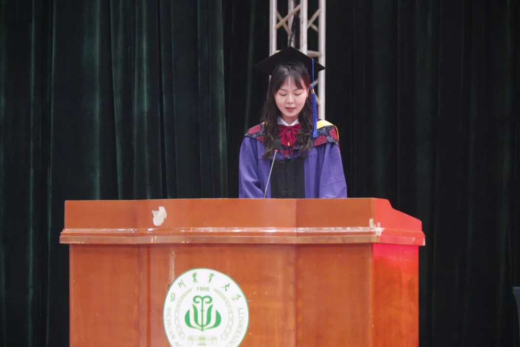 院学位评定分委员会委员、农机系教师、硕士生导师雷小龙深情寄语毕业生,希望他们不忘初心、牢记使命,勇往直前,建设祖国。硕士毕业生代表陈彦君和本科毕业生代表熊星瑶也分别发表了动情的毕业感言,回顾了川农旅程中的成长与蜕变,表达了对母校深深的感激之情和对未来的美好憧憬。