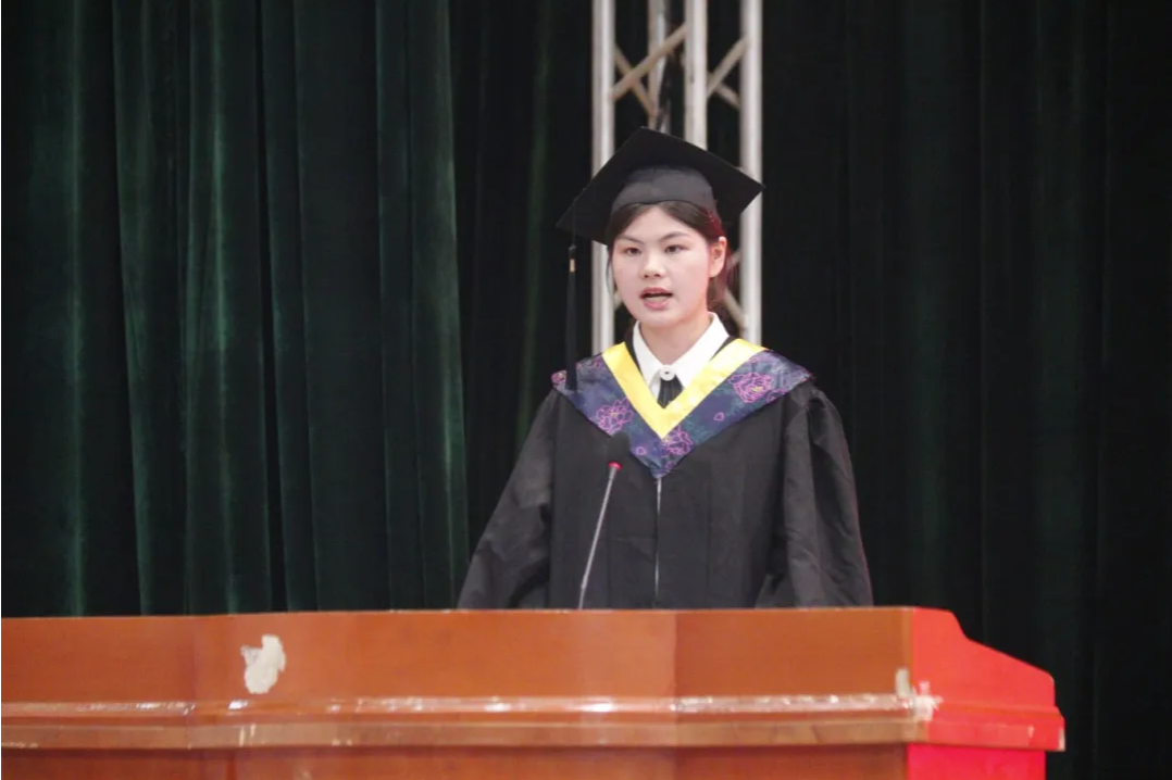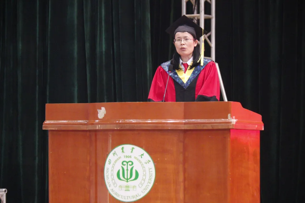伴随着嘹亮的《国歌》声,仪式正式拉开帷幕。许丽佳代表学院向全体毕业生致辞。她深情回顾了毕业生们珍贵的求学时光,勉励他们在今后的工作和生活中牢记“三最”——奋斗的人生最美丽、创新的青春最多彩、高尚的人品最宝贵。同时,她希望毕业生们铭记“追求真理、造福社会、自强不息”的校训,将川农大精神传播至四海八荒,继续发扬母校的优良传统,勇攀高峰,追求卓越,以优异的成绩报效社会。