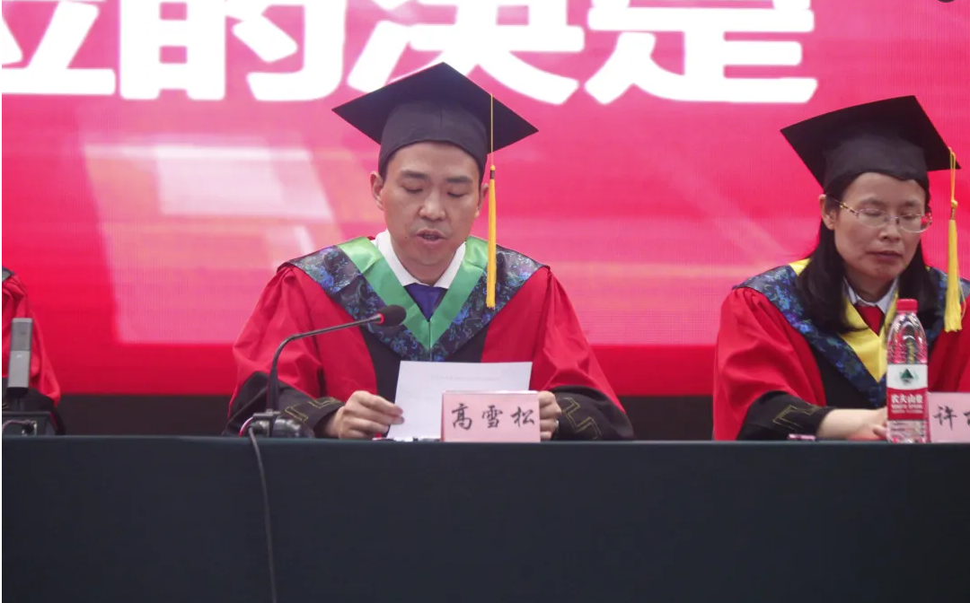 高雪松宣读了校学位评定委员会关于授予硕士学位、学士学位的决定。张黎骅宣读了各学位授位学生名单。