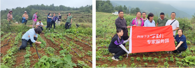 团队深入一线,与会东县桑蚕产业发展科普教育示范基地的种植户展开深入交流,了解当地大豆与桑树复合种植情况,针对目前存在的茂密桑树下种植大豆的问题提出建议,应避免将大豆过于靠近桑树种植,以扩大大豆接收阳光的空间,从而提高大豆产量。