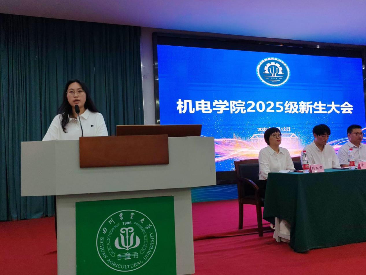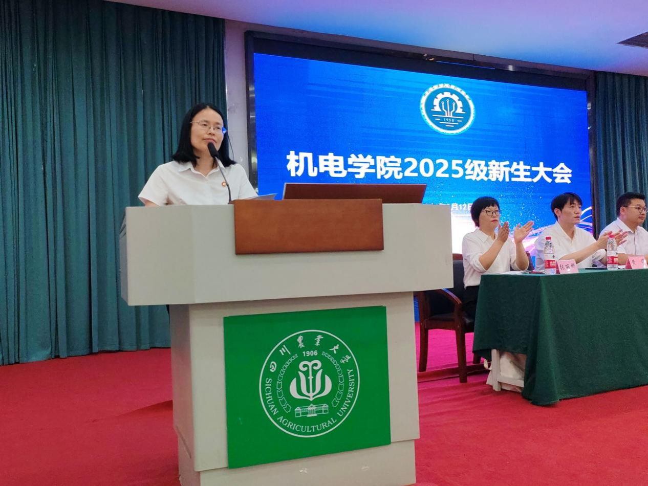 会上,机电工程学院院长许丽佳首先代表学院对2025级新生的到来表示热烈欢迎。她从学院发展历史、学科优势、师资力量、科研平台、学生就业及优秀学子事迹等方面展开介绍,让新生全面了解学院实力。同时,许院长对新生提出三点期望:一是明确学业目标,筑牢知识根基,为后续专业学习打下坚实基础;二是勤思善学攻坚,主动攻克学业难点,培养解决复杂问题的能力;三是深耕钻研创新,积极参与科研实践,激发创新思维与潜能。她最后寄语新生:“希望大家传承‘川农大精神’,以奋斗之姿点亮大学征程。”