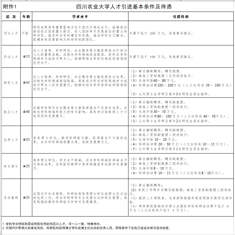 (四)地方配套:学校三个校区所在的雅安市、温江区、都江堰市以及成都市,均有众多人才支持政策和项目,学校将给予最大的力度推荐申报,并提供相关配套支持(具体详见学校人事处网页