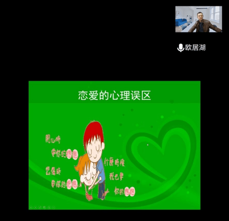 3月25日是“善爱我”心理健康日,为营造心理健康氛围,学院特意邀请了学校心理健康办公室主任欧居湖老师讲授《大学生恋爱成功之密匙》主题讲座,同学们通过腾讯会议参加了一场恋爱大讨论。本次讲座由机电学院心理健康办公室主办,雅安校区10个学院、300多名师生通过线上平台聆听讲座。