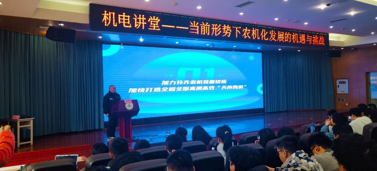 邱云桥从四川省的基本情况、启示思考、对策建议三方面就如何加力补齐农机装备短板、加快打造全程全面高质高效“天府良机”,来讲述“谁来种地、怎么种地、如何种好地”、“解决田里的那点事”。“要将自身所学运用到实践中,将理论写到大地上”、“要学会用跨界思维从多维度、多层面解决实际存在的问题”,这是邱云桥谈到目前四川省农业机械方面存在的短板和问题时给同学们提出的思考方向。他认为农机装备作为农业发展的“决胜重器”,在保障国家粮食安全、建设农业强省等“国之大者”、“省之要事”中发挥着关键作用。