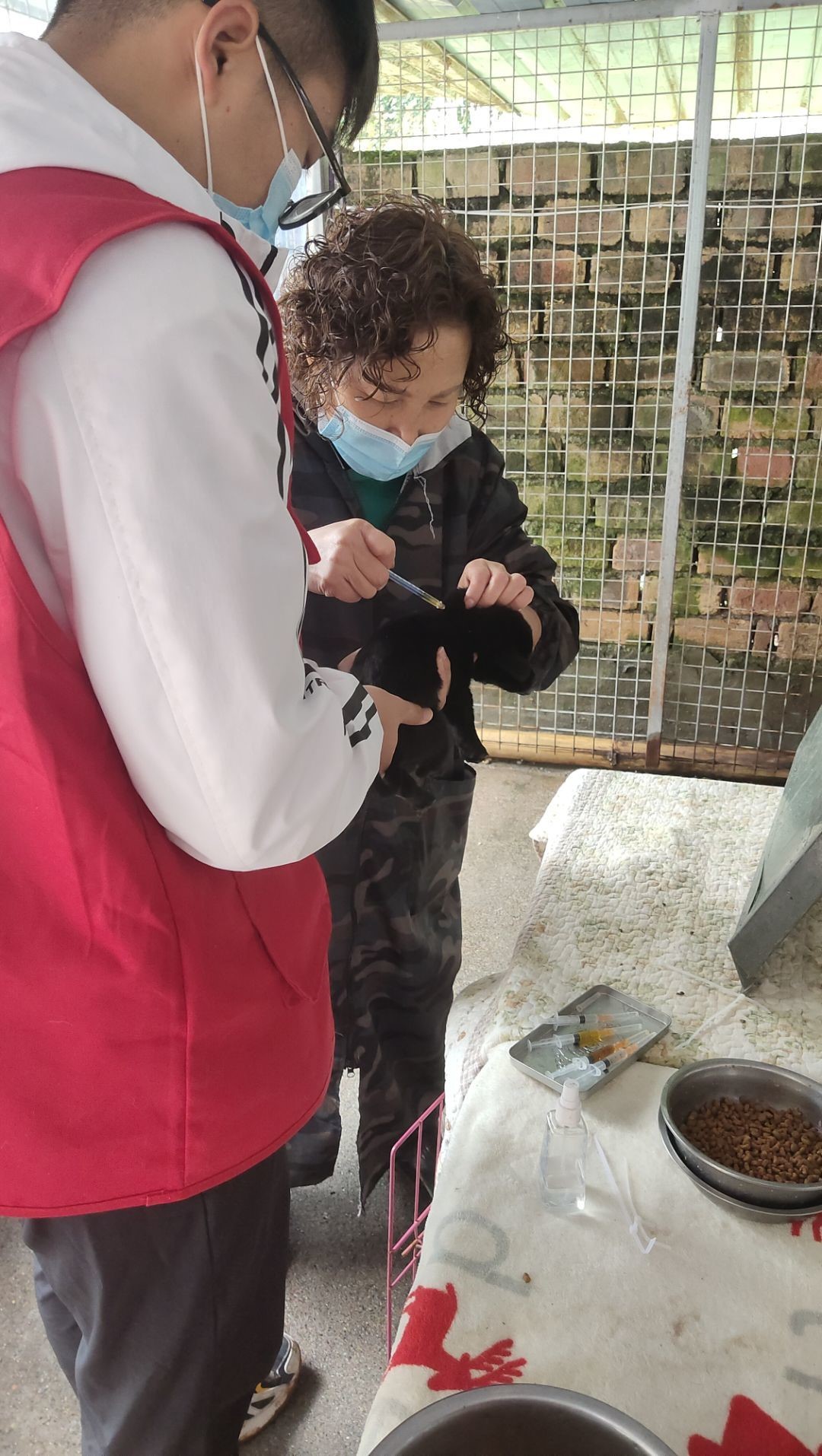 (图为志愿者帮助阿姨给生病的小狗注射药物 寇建川 摄)