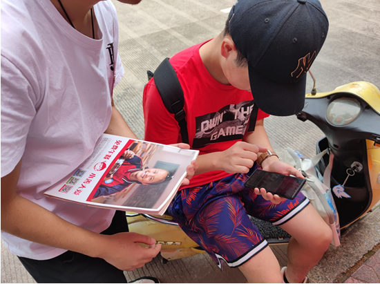 9月14日上午9:30志愿者置办好所需物资,按时前往指定地点完成前期准备工作。并于10点整准时发起此次的募捐活动。活动采取线上捐款的模式,参与募捐的同学通过扫描志愿者所发起的团队二维码,参与志愿者组建好的公益小队进行捐赠,也可直接进入官方渠道参与到募捐活动当中。活动前期,同学大多处于观望状态,于是志愿者采用海报发布以及口头宣讲的方式,为来往同学细致讲解了此次活动的目的意义,逐渐吸引到许多同学参与。起初有部分同学对捐款资金流向存有疑问,但经过了解,同学们开始理解赞同并纷纷表示支持,进行了大小不等的款项捐赠。有同学表示:“自己一瓶可乐的钱,就够这些孩子吃上一顿饭,这么看来给孩子们更划算啊!”