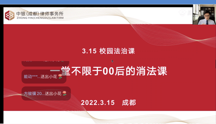 3月14、15日下午,机电学院学生会学生权益部、人文学院学生权益部联合举办以“315”为主题的线上讲座。本次讲座特别邀请中国人民银行雅安支行征信管理科骆怿、中国工商银行雅安分行陈璐瑶、雨城区市场监督管理局西城监管所副所长任新波、北京中银(成都)律师事务所专职律师张汇律师担任主讲。