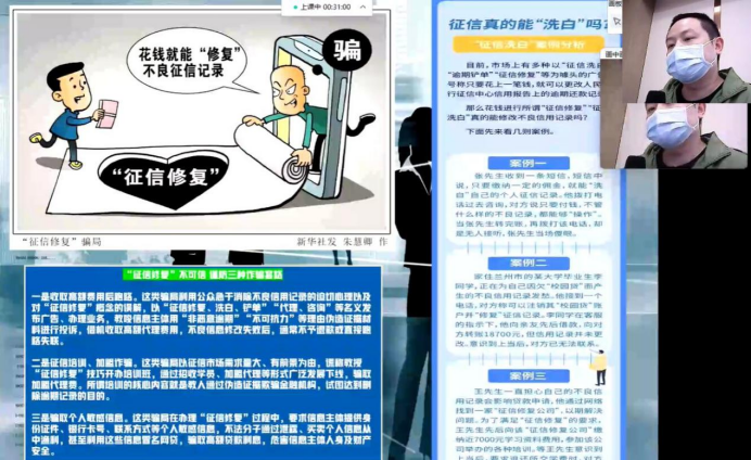 骆怿向同学们介绍了当前征信修复方面的不良现象,普及了保障信息主体权益的方式。他指出当信息主体认为自己的合法权益受到损害时,征信主体有权向征信中心或者数据报送机构提出异议。随后,骆怿向同学们详细介绍了“个人异议”和“企业异议”的处理流程,指导同学们正确维护自己的合法权益。最后,他向同学们强调了校园贷的危害,告诫同学们理性消费,远离校园贷。