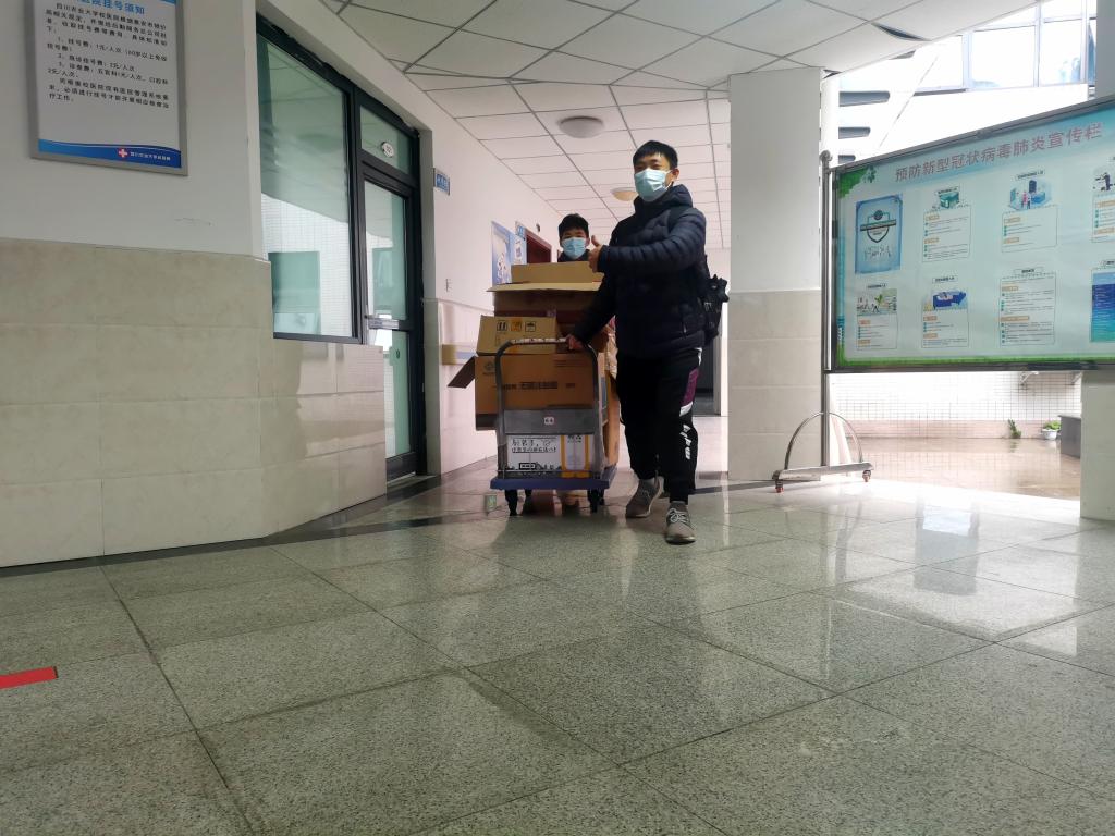 (图为志愿者搬运活动物资 傅宁 摄)