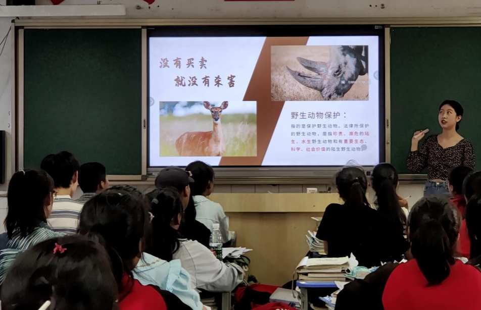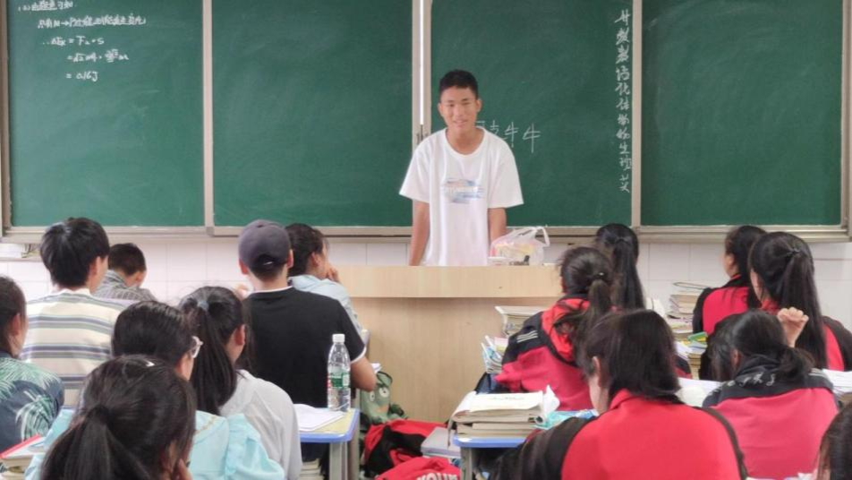 (图为志愿者在给昭中学生讲授课外知识 图源:李远福)