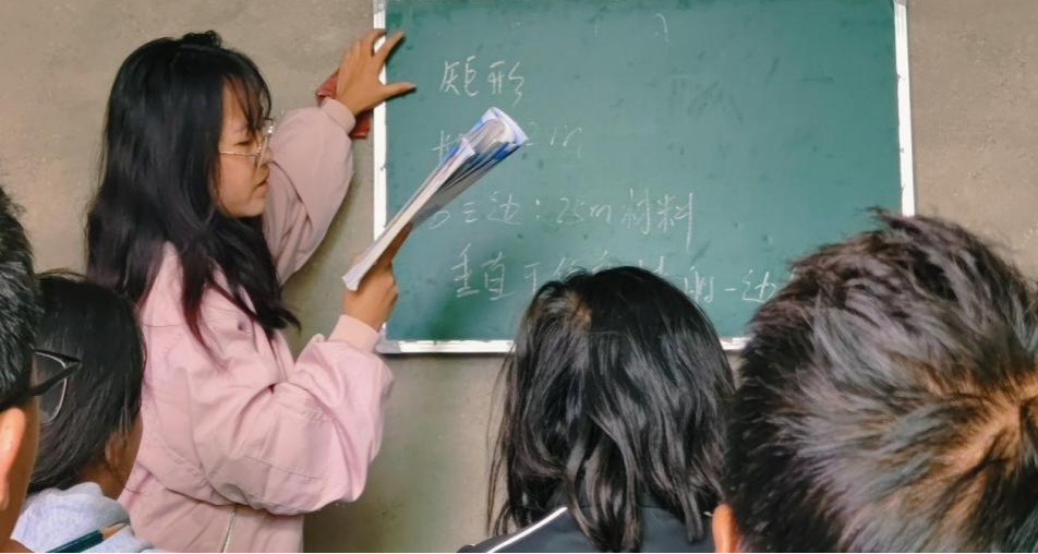 (图为志愿者在给乡镇学生辅导学业 图源:尔古伍合)