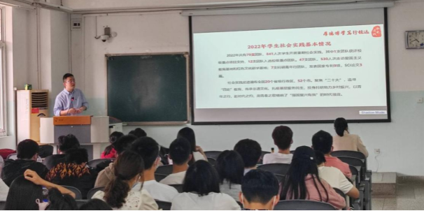 为进一步提升我院社会实践成效,引领同学们积极参与社会实践活动,5月23日,学院在1教610举办2023年暑期社会实践动员大会,学院党委副书记黄锎靓、团委老师杨梅、实践部负责同学、各小班班长和团支书参会。