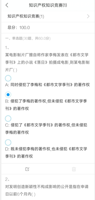 该活动以知识产权为主题,采取线上答题的方式进行,最终答题合格者达到70%左右,90分以上的有26名同学。答题后不少同学反映自身知识产权相关知识的欠缺,产权意识有待提高。“参与活动后,我才了解到知识产权原来还有这些规定,以前都是一知半解,这次真是太涨知识了!”一位同学这样感慨。