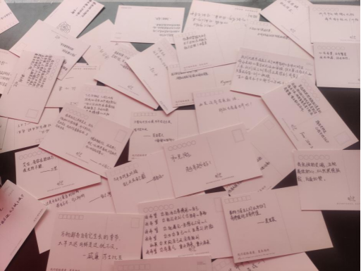 参加活动的同学在空白明信片上写下自己喜欢的句子,并带走一张其他人写的明信片,以此达到同学们相互交流、以文会友的目的,该活动吸引近100名同学参与。同学们的留言既有励志的名言,也有从传统名著、现代文学中摘抄的美句。一位同学在明信片上写下《山月记》中的句子:“我深怕自己并非美玉,故而不敢加以琢磨,却又半信自己是块美玉,故而不肯庸庸碌碌,与瓦砾为伍”,字句之间流露出她对自身价值的思考。