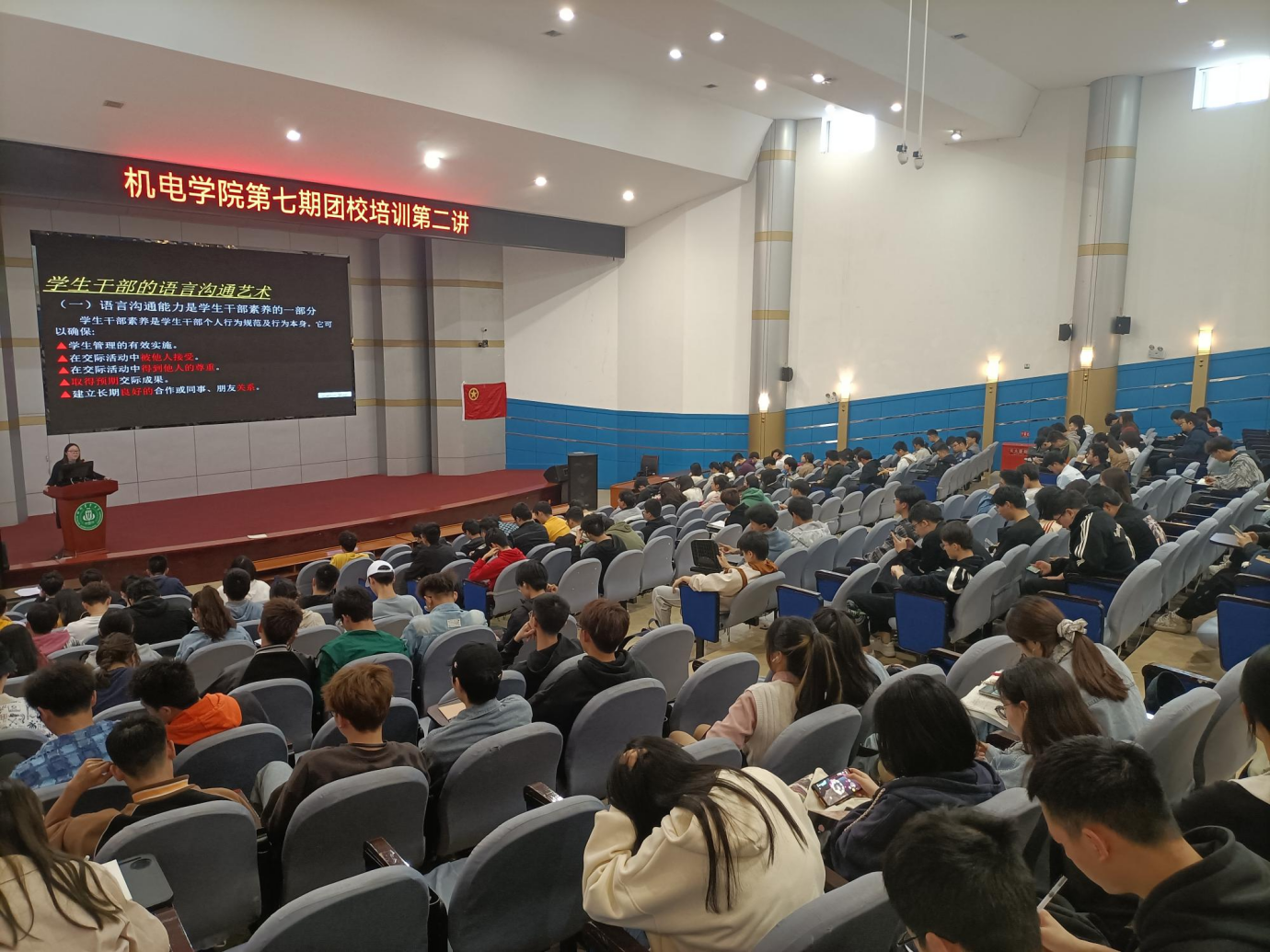 3月31日下午,机电学院第七期团校培训第二讲在逸夫楼小礼堂如期举行,组织到场参与学习的同学有学生组织全体成员、青马学员、各小班班长团支书以及入团积极分子,本次培训由机电学院团委周书玉老师作为主讲。