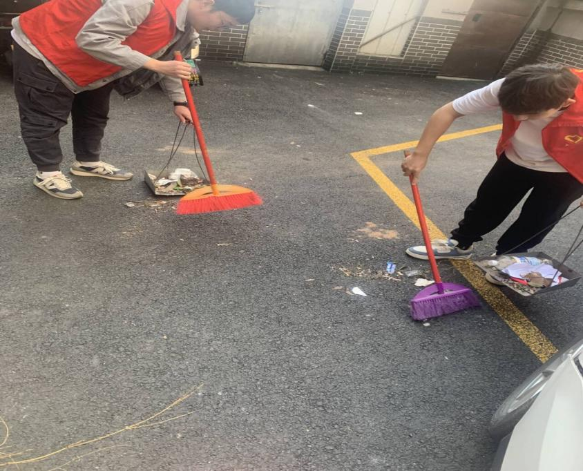 (图为支援者打扫华兴街街道卫生 摄/盛川)