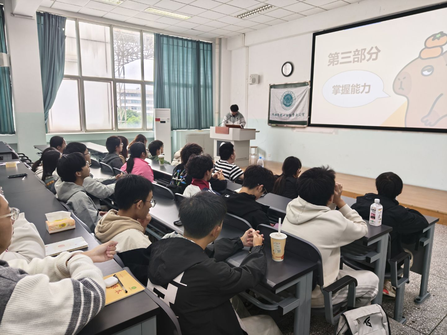 培训于14:40正式启动,由学院心理健康办公室部员方梓骏主讲。他围绕“权责、必懂常识、掌握能力、自我关怀”四大模块展开,纠正心理委员职务认知误区,将核心职责凝练为“观察、关心、报告”,并结合生动实例指导委员区分同学心理异常原因、匹配应对方法;期间穿插提问环节,有效活跃氛围、提升参与度。