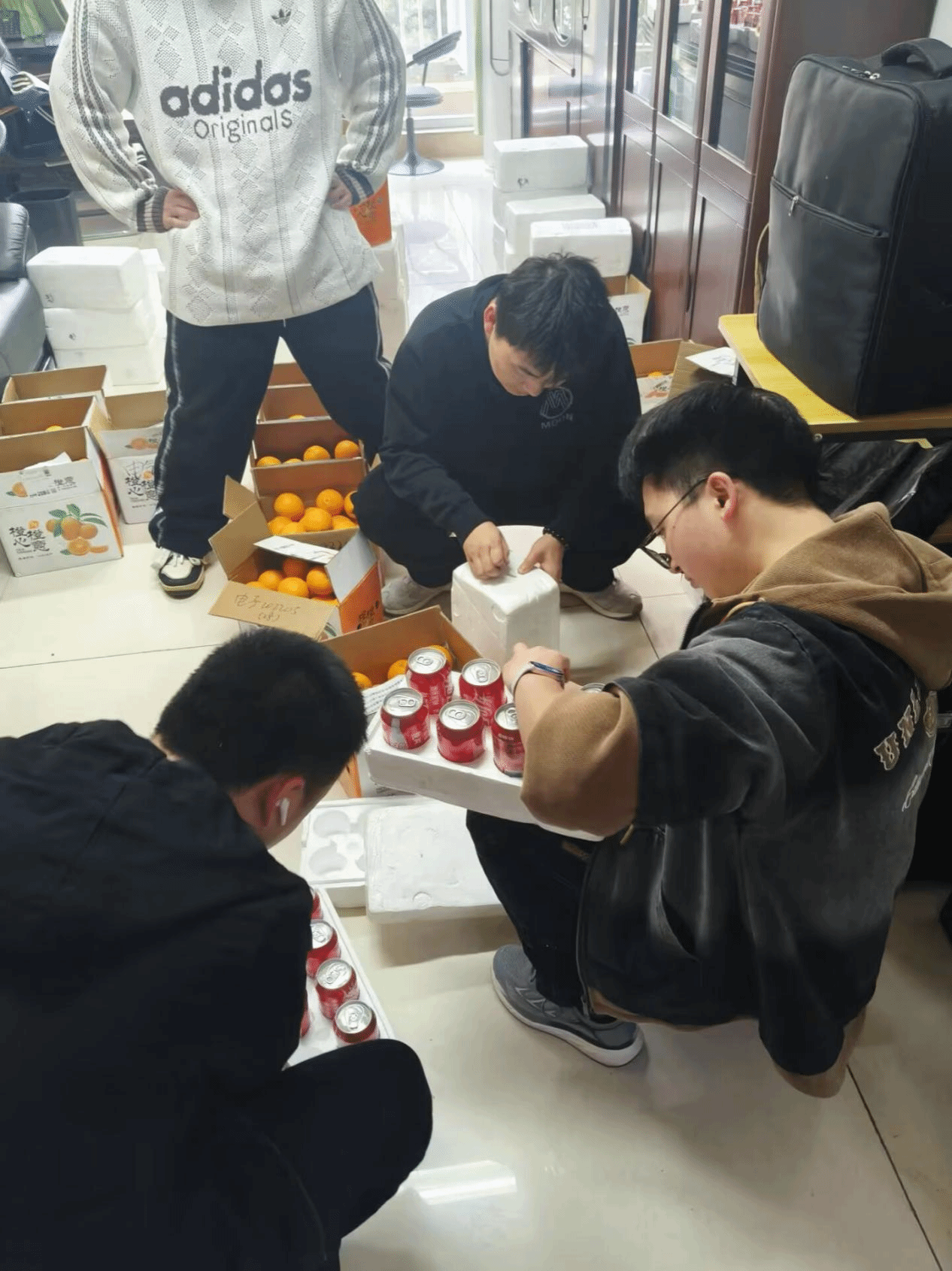 这份专属福利的诞生,藏着学院的贴心祝福:为了让祝福更有温度,老师们特意在可乐瓶身定制每位同学的姓名与 “机电加油”“考研必胜” 等字样,寓意着 “快乐冲刺、一路开挂”;挑选口感清甜、饱满多汁的鲜橙,承载着 “一举夺魁、前程‘橙’功” 的美好祝愿。