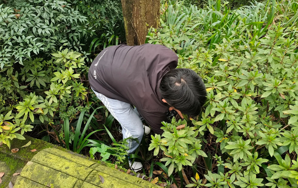 (深入灌木林捡拾白色垃圾的志愿者 徐永秀 摄)
