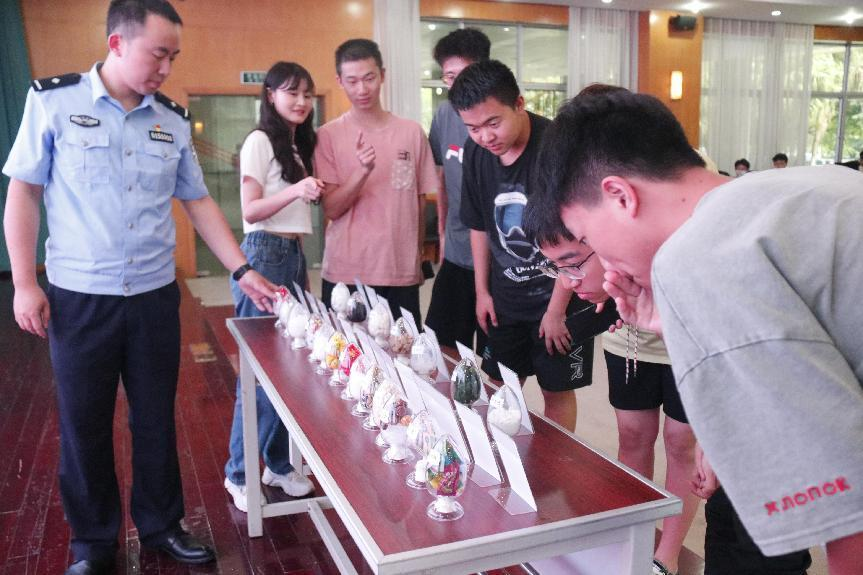 (图为杨教员为同学展示并讲解毒品样本)