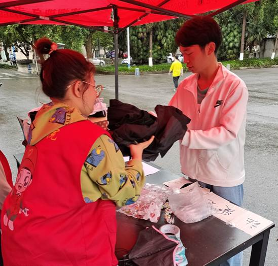 “刚刚来了几位同学,他们捐了好多衣服,他们说不需要加分,也不要我们的小礼品,真是大好人啊!”志愿者小苏同学向活动负责人感慨到。