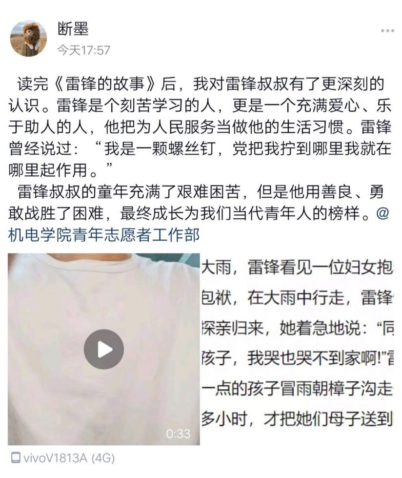 为进一步弘扬雷锋精神,发扬乐于助人、勤俭节约的良好品德,学院团委志工部开展了“情系雷锋月 春暖三月天”的主题活动。活动分为诵读雷锋故事、光盘打卡、温暖支教三个板块。