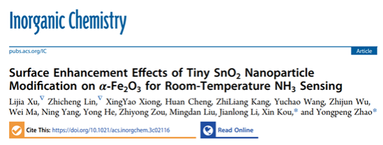 近期,机电学院许丽佳教授研究团队在国际著名期刊《Inorganic Chemistry》(N1级、自然指数来源期刊)发表题为“Surface Enhancement Effects of Tiny SnO2 Nanoparticle Modification on α-Fe2O3 for Room-Temperature NH3 Sensing”的研究论文,该项研究在铁氧体表面修饰具有高催化活性的SnO2纳米颗粒,以电子敏化增强和化学敏化增强协同的方式全面优化了器件在室温工作状态对低浓度氨气的响应效能,其对100 ppm氨气表现出响应速度快(14秒)和灵敏度高(83.9%)等特点。该研究为实现低成本、高效能的农业环境氨气检测提供了极具潜力的解决方案。论文通讯作者为机电学院赵永鹏副教授和研究生院寇欣博士,第一作者是机电学院许丽佳教授和2021级硕士研究生林志成。该研究工作得到了四川省自然科学基金、国家级大学生创新训练计划项目以及tyc41183太阳成集团双支计划的支持。